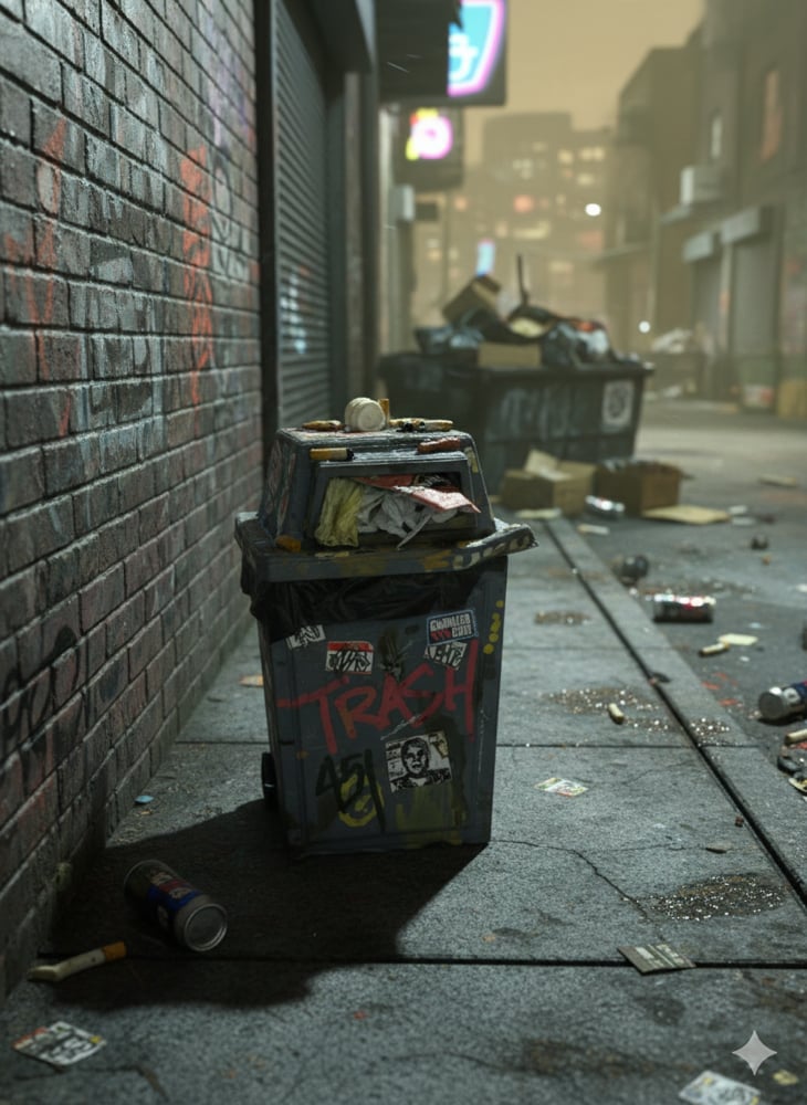 A gritty, industrial-grade disappointment that’s seen more 3:00 AM regrets than a dive bar bathroom. It’s covered in bad decisions and smells like an unpaid internship